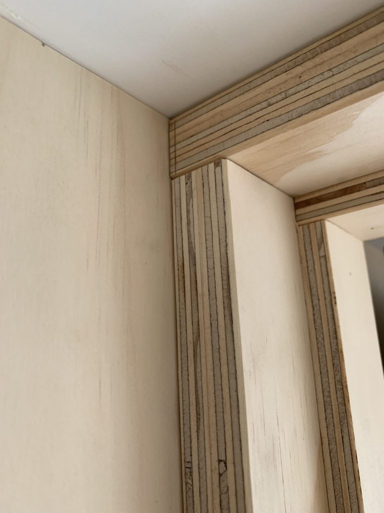 Resene Low VOC Whitewash finish to plywood wall linings.