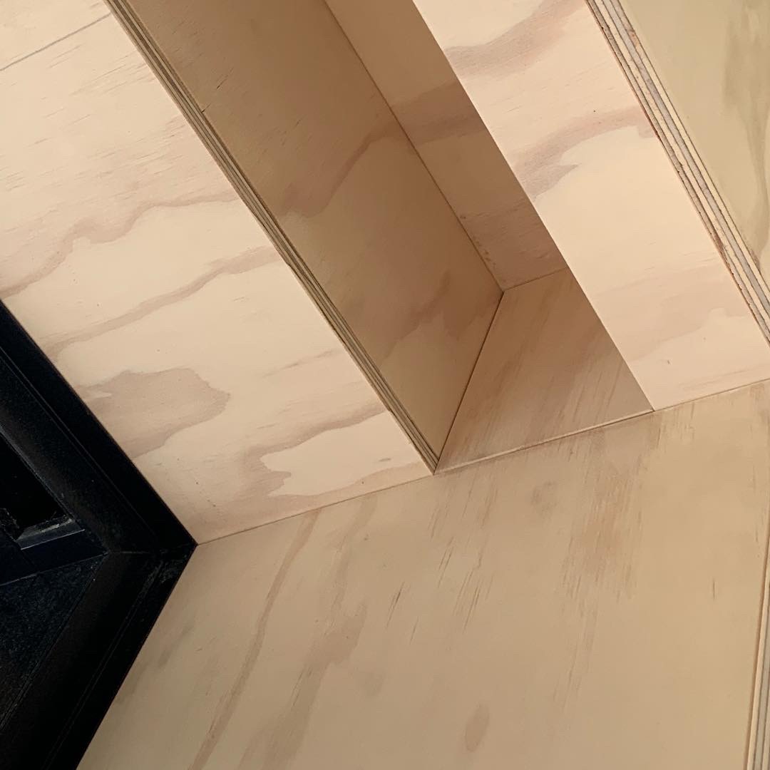Resene Low VOC Whitewash finish to plywood wall linings.